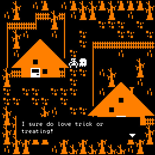 Bitsy games are the wave of the future, as far as I am concerned, and A Boneless Halloween is the perfect example. In it you play as a young skeleton child who is trick or treating throughout the neighborhood in search of friendship and candy.