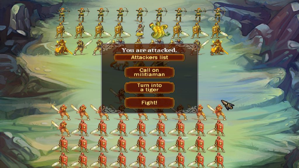 Battles are automated, and apart from being able to control your balance of several types of units such as swordsmen, knights, minotaurs, you have no control over where units are placed. The unit movements and patterns are the same throughout; Although replays will follow the same basic concept, playing around with a different build, buffs and culture will result in a completely different outcome.
