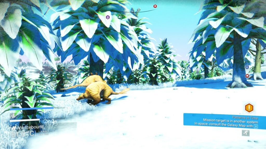 Alas — no such luck. I ran around in a very large radius of where I had landed and couldn’t find a predatory animal anywhere. Then I got back in my ship, took off and simply pointed it south. Landed again, rinse and repeat. Finally, I spotted a batch of two or three different species, except that none of them were predatory. “It’s fine, it’ll be okay.”