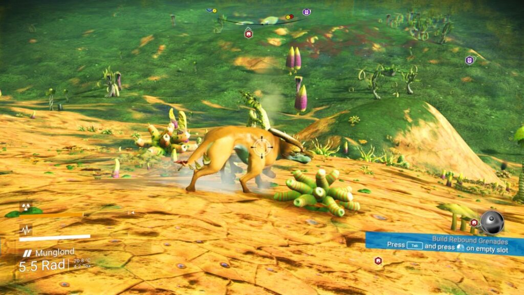 In case you didn’t know, No Man’s Sky’s creatures are procedurally generated with various traits. They can be anything from docile and shy to aggressively predatory. Clearly, the planets I found were mostly out to get me. Especially the one with the hordes of killer crabs., while some are, in fact, hunters. Several are quite funky looking, while a large quantity of them are actually very sleek. They come in a gargantuan variety of shapes, colors and sizes. If you’re the first to discover a species, you can even name them! Most of them make some kind of sound, from happy or sweet to sad or pathetic. In fact, a lot of them just sound kind of sad to me.