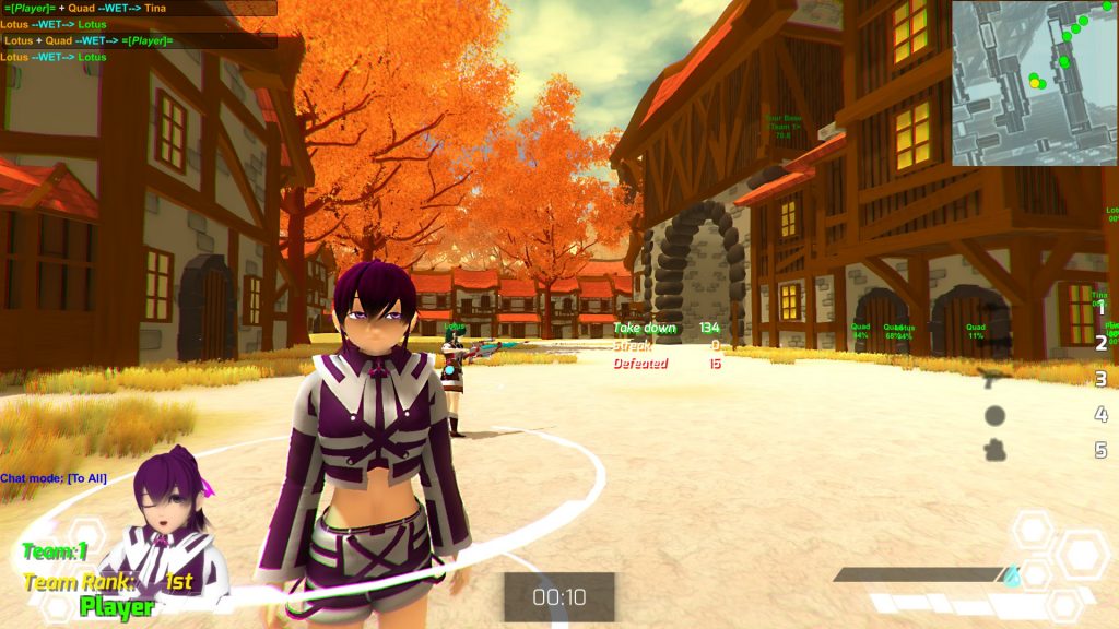The game uses the unity engine as I mentioned earlier, and it shows the anime like visuals beautifully whilst keeping the frames per second up high, even when the game gets hectic with tens of characters shooting at each other, so even at this early stage of its life it runs great and looks great.