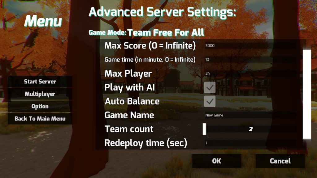 As you can see in the above screenshot there are plenty of options to tinker with in the server options screen, so whether you create a public game to join, you can easily make one yourself as there’s no need for dedicated servers. If you just want a quick blast with or against friends then you can do so easily! With the game being less violent it’ll hold up against the big guys such as Overwatch, Battleborn and the likes.