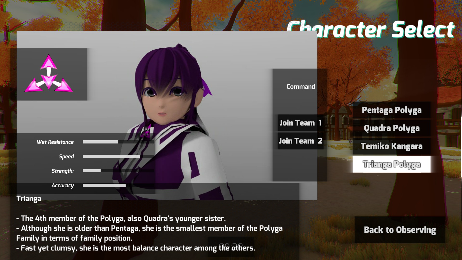 Trianga is your “balanced” class which carries a sniper rifle, a bazooka, an automatic pistol, water bombs (think grenades) and an automatic aiming turret. Temiko is the fastest in the game with the best accuracy. She carries the same weapons as the others apart from the last which is a pole that she sticks in the ground, this can detect where the enemies are located on the mini map as they don’t show up on the mini map unless they shoot.