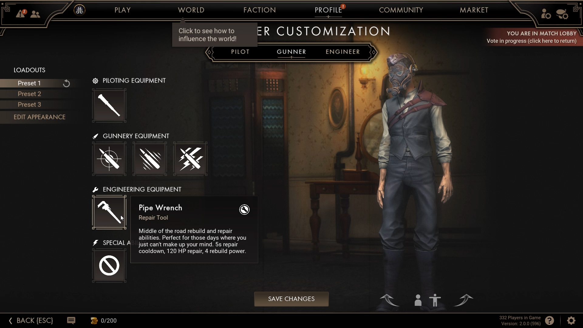 I chose the Anglean Republic mainly because the characters shown on the faction choice screen had fancy coats. But let’s skim over the fact I joined a selfish group of people because I was blinded by fluffy coats that you don’t actually get in the game.