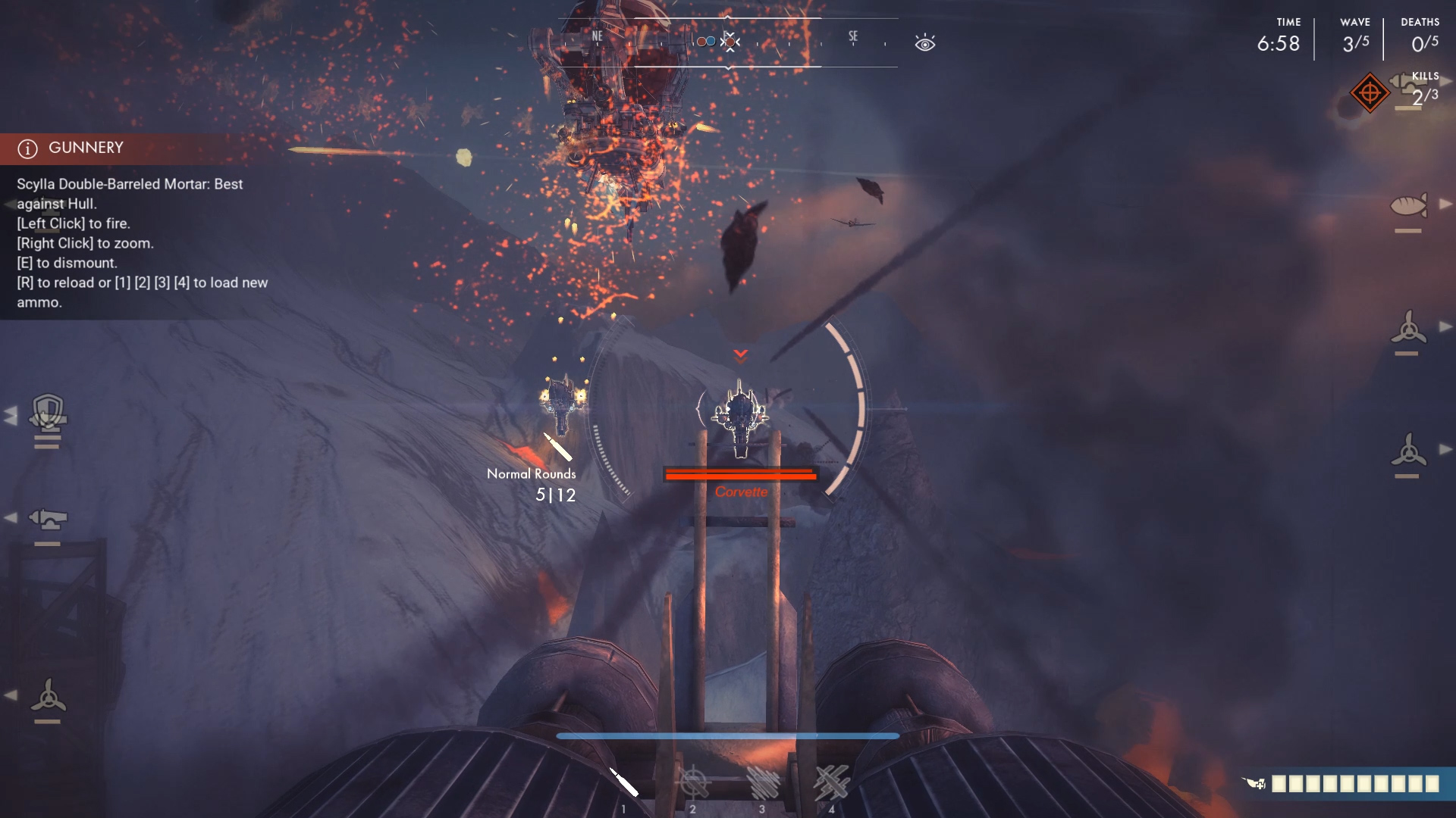 For some reason, despite being incredibly similar to the Guns of Icarus: Online gameplay, you feel more connected with your crew, whether that’s because the command wheel feels more intuitive, or whether it’s because the theme is so simple to pick up that you don’t need to shout orders at your team all the time…I felt like I was part of a working crew, I felt like we were all connected on the same level, regardless of rank, regardless of experience. It was a nice feeling. Pilots will take to the helm and begin popping the ship into sail, Engineers will begin buffing up weapons and adding perks if they have chosen such tools, and Gunners will man the guns and mark out the enemy ships with their spyglass.