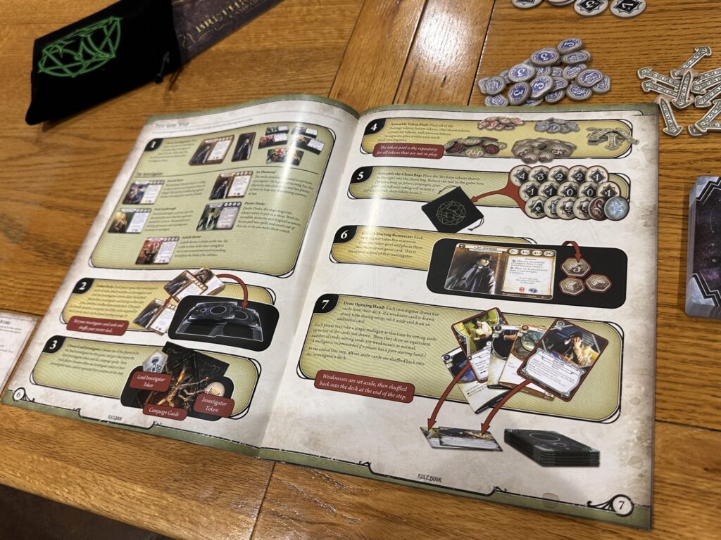 At its heart, Arkham Horror: The Card Game is a cooperative deck-building experience, where your deck reflects not just your abilities, but your limitations and the way you approach problems. The rulebook does an excellent job of guiding you through those early steps, giving each investigator a solid foundation before encouraging you to experiment and adapt as you grow more comfortable. It’s structured enough to support new players, but open enough to reward those who want to dig deeper.