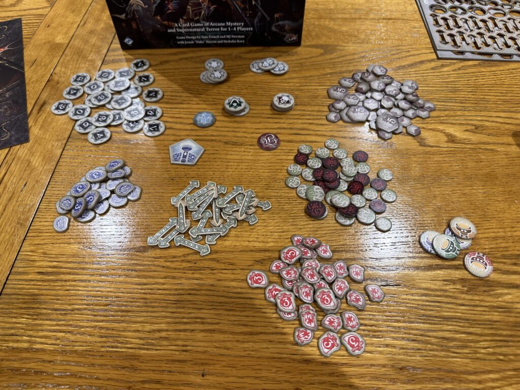 What the game does particularly well is maintain a constant sense that you are just about holding things together. The doom clock ticks forward, enemies edge closer, and your carefully constructed plan begins to fray at the edges. It’s not loud or dramatic tension. It’s quieter than that. It’s the hesitation before drawing from the encounter deck, the realisation that you don’t quite have enough actions left, the creeping suspicion that this scenario may not end well—and the understanding that the game will continue regardless.
