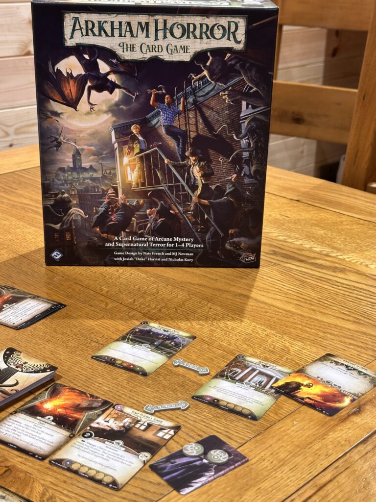 There are games that invite you to sit around a comfy table with friends and enjoy a pleasant evening full of laughs and light-hearted competition. Then there is Arkham Horror: The Card Game. This one hands you a flickering lantern, leans in just a little too close, whispers something deeply unsettling about things man was not meant to know, and gently ushers you—and anyone brave enough to join you—out into the dark.