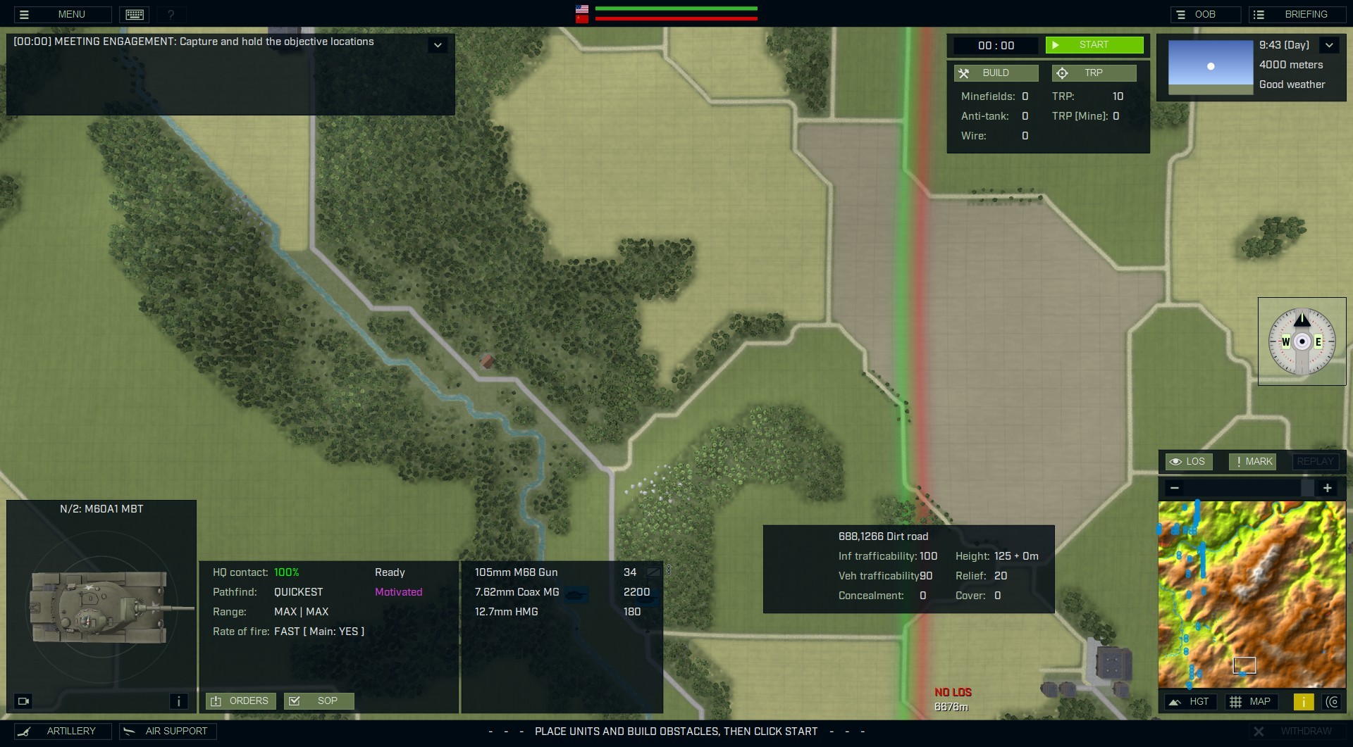 The force(s) placements on the board are done by the computer. HOWEVER, before even hitting the “Start” button, you can move you units at will, to (almost) anywhere you want them to setup and start the campaign. “Almost” because the battlefield has some vertical lines on it: one green, which you have to keep your troops west of; and another red line in which the enemy has to setup his units east of.