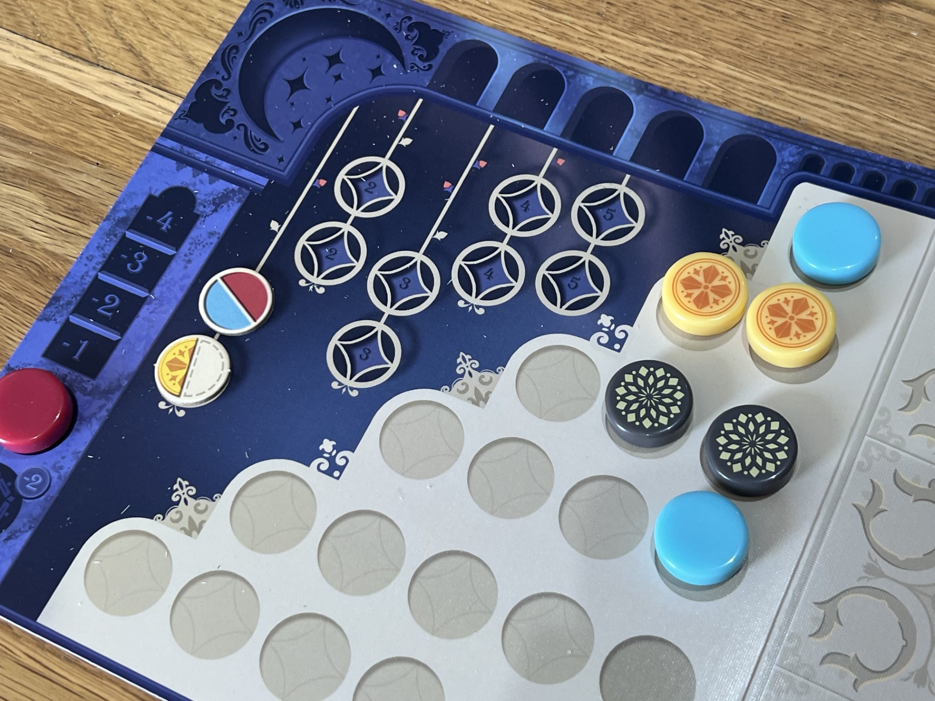 The main element of drafting lozenges is super simple to explain, as is the way that the lozenges are placed onto rows (that can then be moved over when complete). Drafting tiles is also simple, but it means that players now need to process twice as much — can I complete a row of lozenges AND have a tile (and a space) aligned to that row for them to land on? Again, it’s simple, but it takes a turn or two to get the hang of. The only element that I found caused real confusion was the bonus tiles, which weren’t actually that much more to process, but you can always leave them out of your first game or two and it doesn’t take that much away from the game.