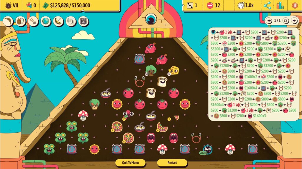 ‘I’ve played Pachinko Roguelikes before’ is one of the most weird sentences that I’ve ever written, however having invested far too long in both Roundguard and Peglin I think I’m possibly as qualified as could be. That said, critically, they were Dungeon Crawlers, and their digital forefather Peggle was an energetic digital twist on the arcade format. Ballionaire is, in fact, perhaps closer to Balatro — in board gaming terms an engine builder (rather than just a deck builder) — with you almost instantly breaking the rules and standards of the classic game it initially masquerades as to score high, rather than progress level to level.