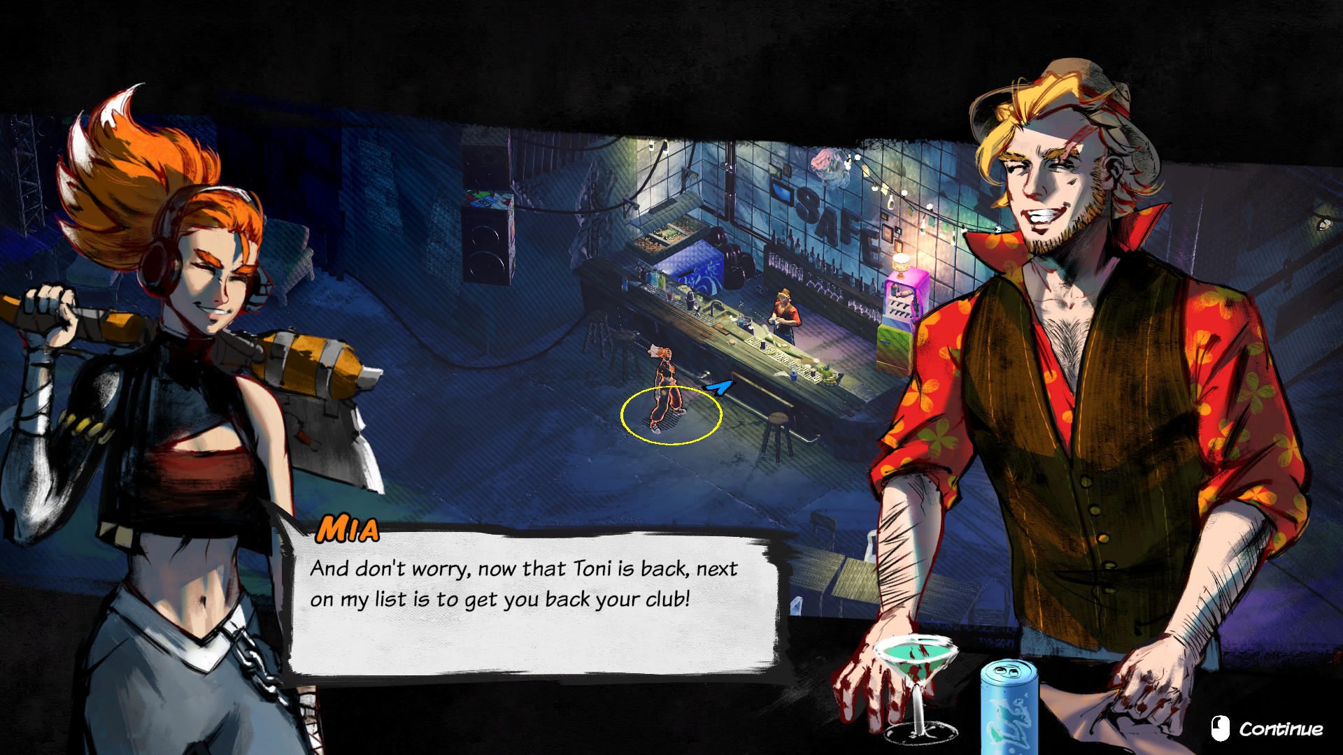 You play as Mia, a woman in 90s Berlin that has been taken over by Dietrich, a musician who has developed a way of controlling people’s minds. If that wasn’t bad enough, he’s also kidnapped Mia’s brother Toni. And so, backed by a group of colourful characters, she sets out on a quest to rescue her sibling and bring down Dietrich and thus save Berlin.