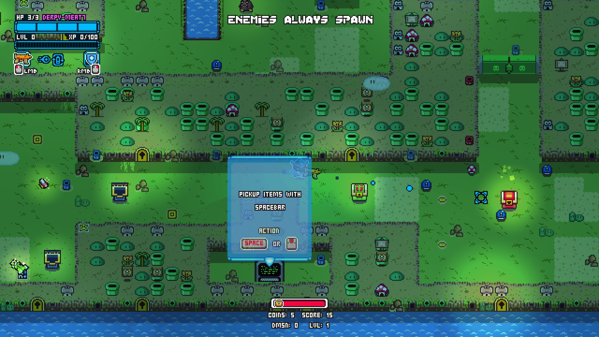 Space Jammers starts off as as a simple Top-Down shooter with some wacky mechanics like jumping into a space craft and surviving for “X” amount of time whilst fending off asteroids to get to the next “Dimension”