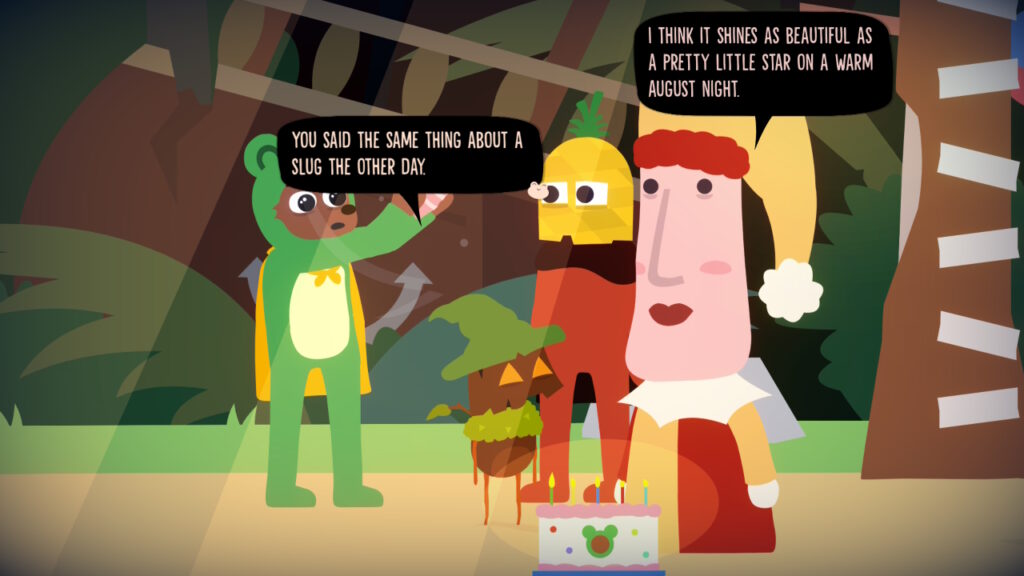 Even though Frogtime is a core part of Bonnie Bear’s gameplay loop, I don’t think it will be the reason you keep coming back. That would be the writing. It’s hard to describe the charming, absurdist humor that is going on here (or not, hey, look at me go), but I would implore everyone who’s ever enjoyed an episode of The Mighty Boosh or the like to give this a try. I wish I could say I loved it, but even though I bounce off it personally, I can recognise the sheer quality of the craft at least.