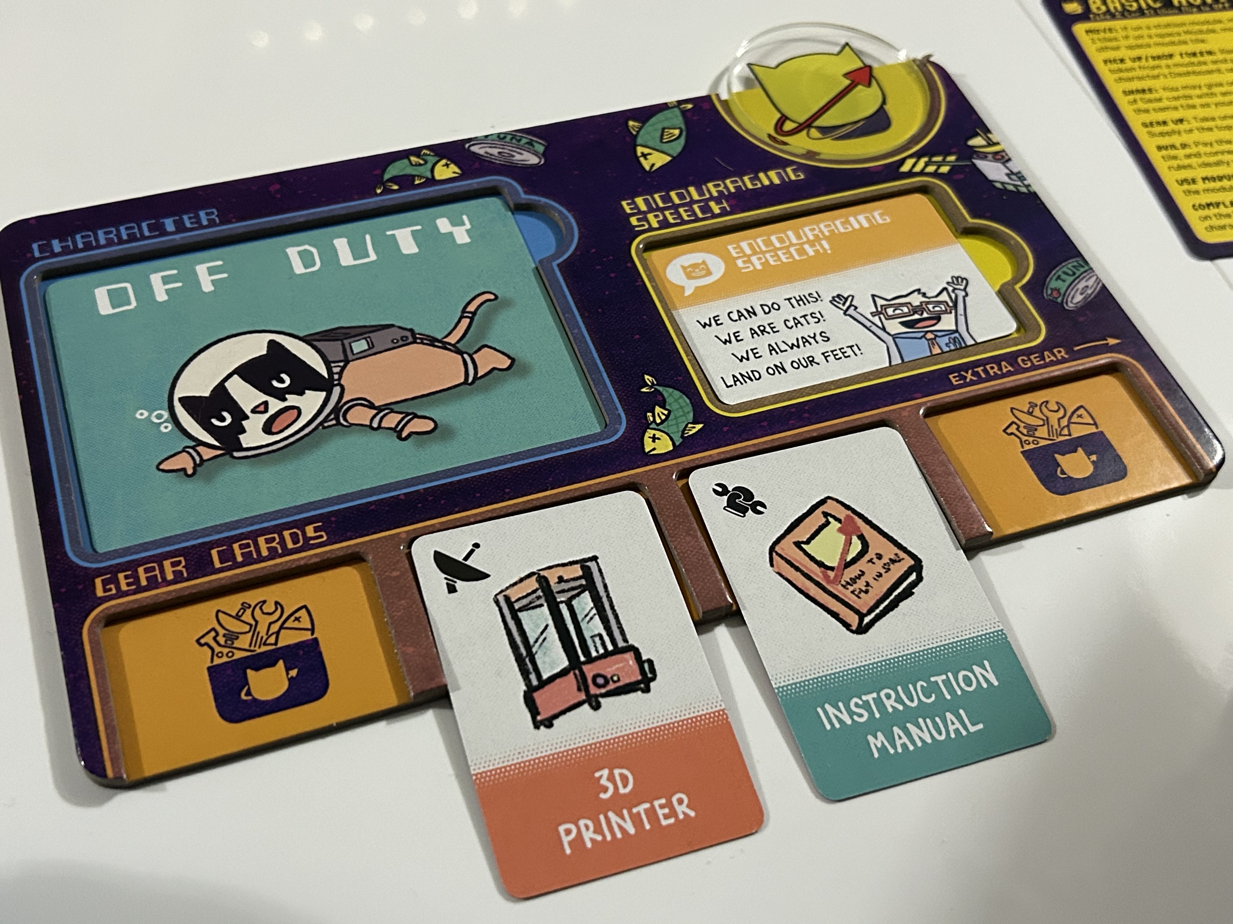 Catstronauts is a very fun and high quality game. There are so many fantastic little details like the on/off token that goes on the computer room and the way the player board has your character card and an off duty side, so you can easily tell who has already gone this round. It’s just a very high quality game that’s well worth playing around with.