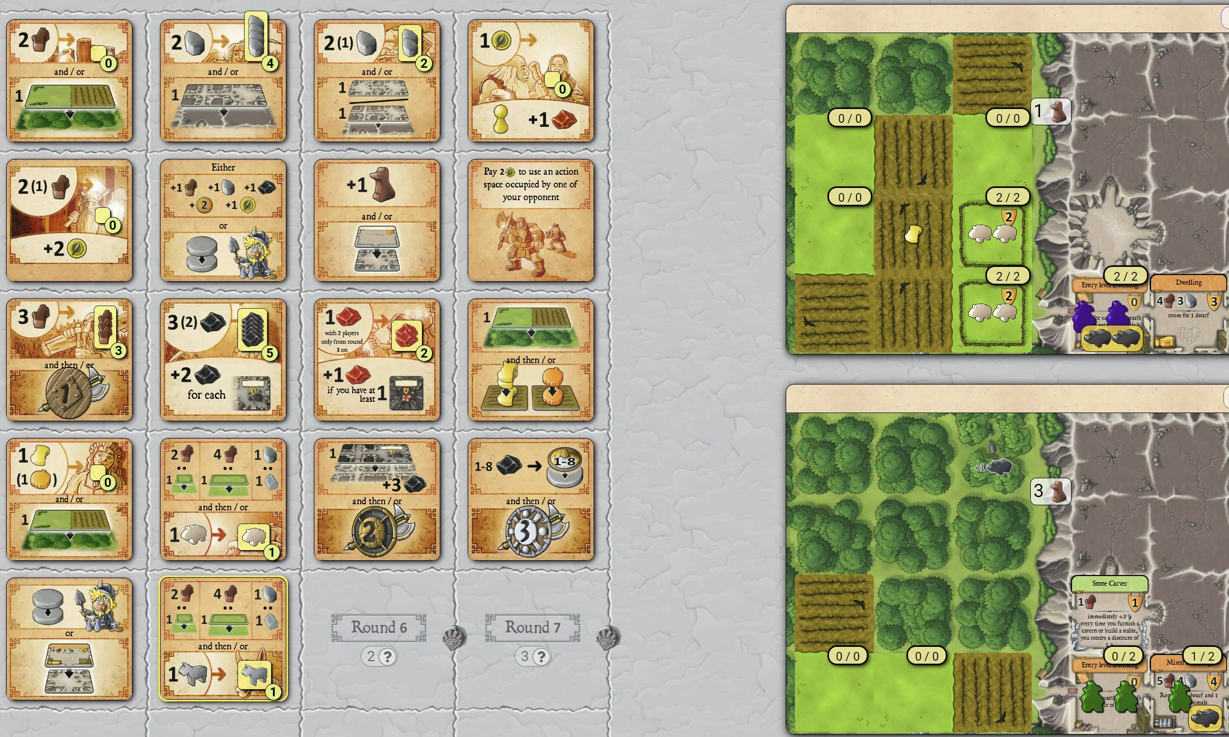 Caverna supports anything from one to seven players (erm, really) and has already been adapted quite superbly to the online platform at www.boardgamearena.com. Caverna is incredible, with so much scope and flexibility that each time you play it, the experience will be different — and yet enough similarity in the core actions that it’s possible to build up patterns of efficiency in your mind.