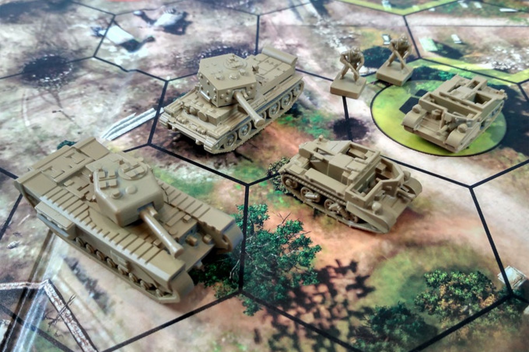 The British Player Set expands Company of Heroes: 2nd Edition with a faction that feels completely distinct from the Americans and Wehrmacht, leaning heavily into defensive play, positional control, and late‑game power spikes. In the videogame, the British are known for their reliance on emplacements, elite infantry, and powerful armour, and the board game captures that identity extremely well. British infantry squads are expensive but durable, and their upgrades — such as Bren guns and PIATs — give them strong mid‑range firepower. The British emphasis on cover and entrenchment means that once the British establish a foothold on the map, dislodging them becomes a serious challenge.