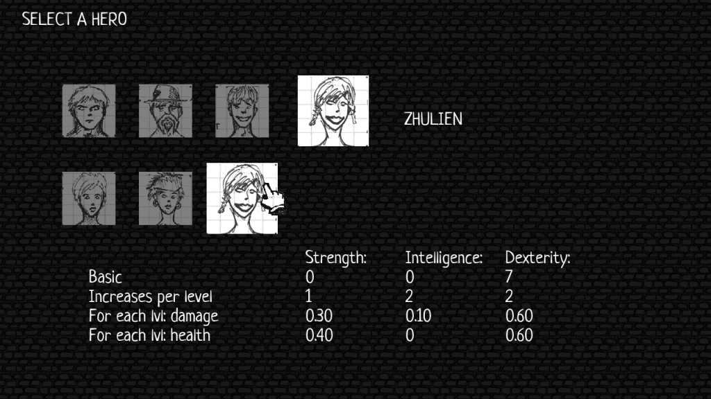 Speaking of which: Paper & Ink Dungeon offers three classes — fighter, wizard and… zhulien — based on its three character attributes — strength, intelligence and dexterity. You can pick whether you want to be male or female, but that is about it for character customisation.