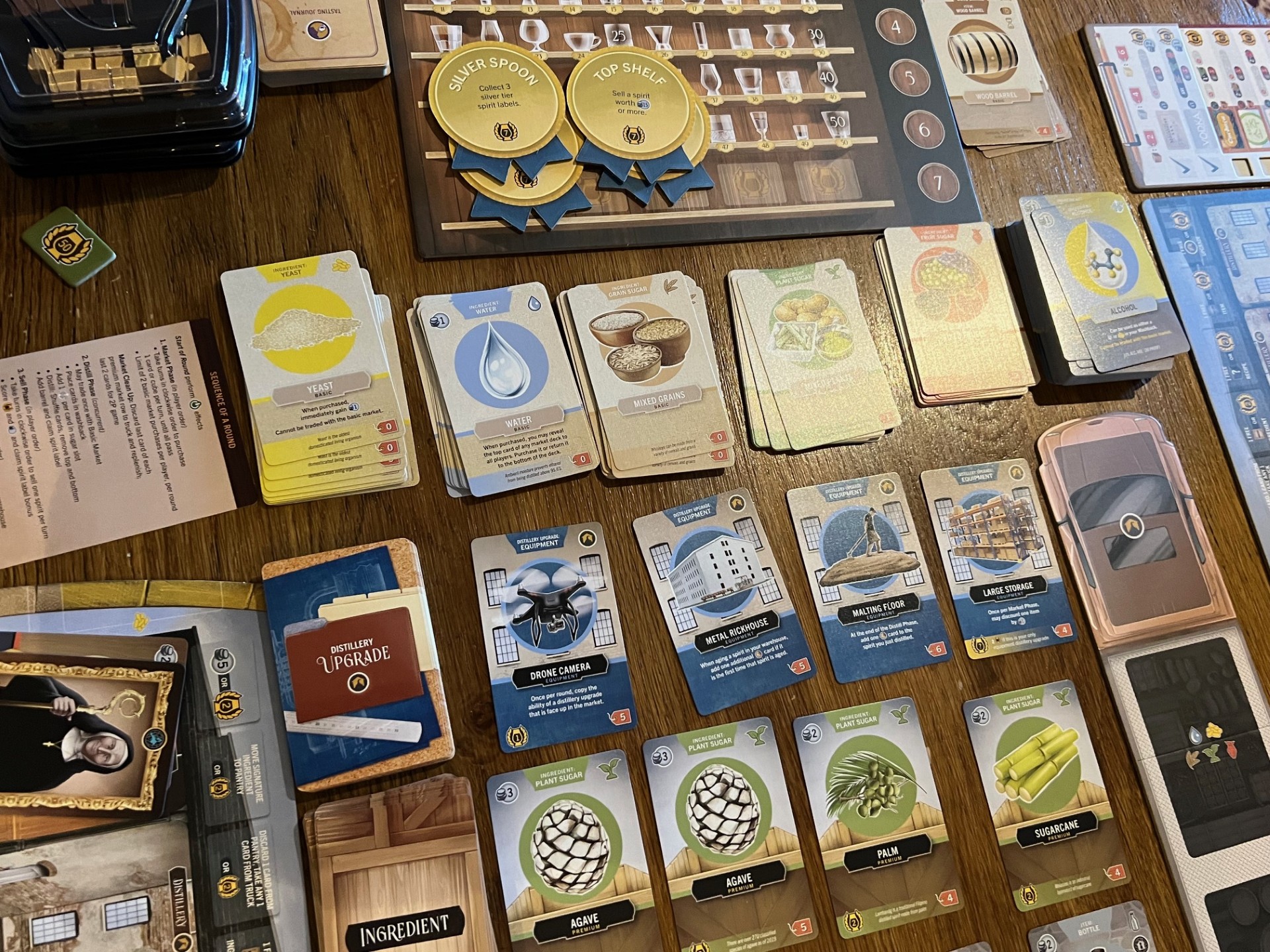I found it very difficult to focus on the restrictions of the alcohol I wanted to make, whilst also considering what region it was from, whether I had a bottle to match, how many personal and shared objectives it might meet and how many points it would score, whilst also keeping in mind my overall financial position and what the next round might look like (bearing in mind you may have one or two spirits ageing, plus one you are trying to make).