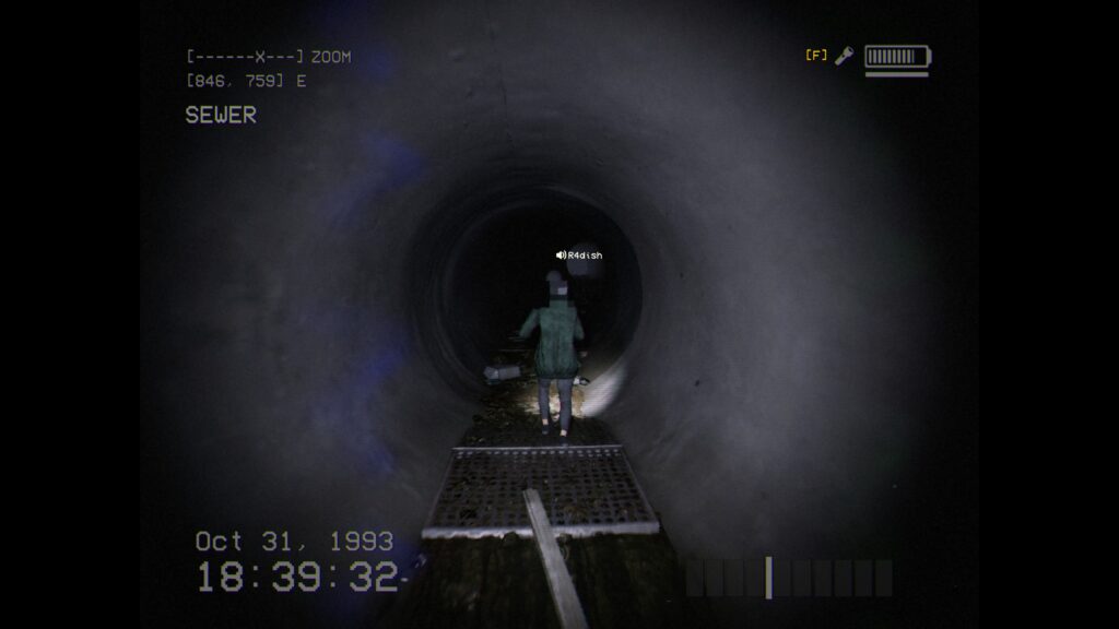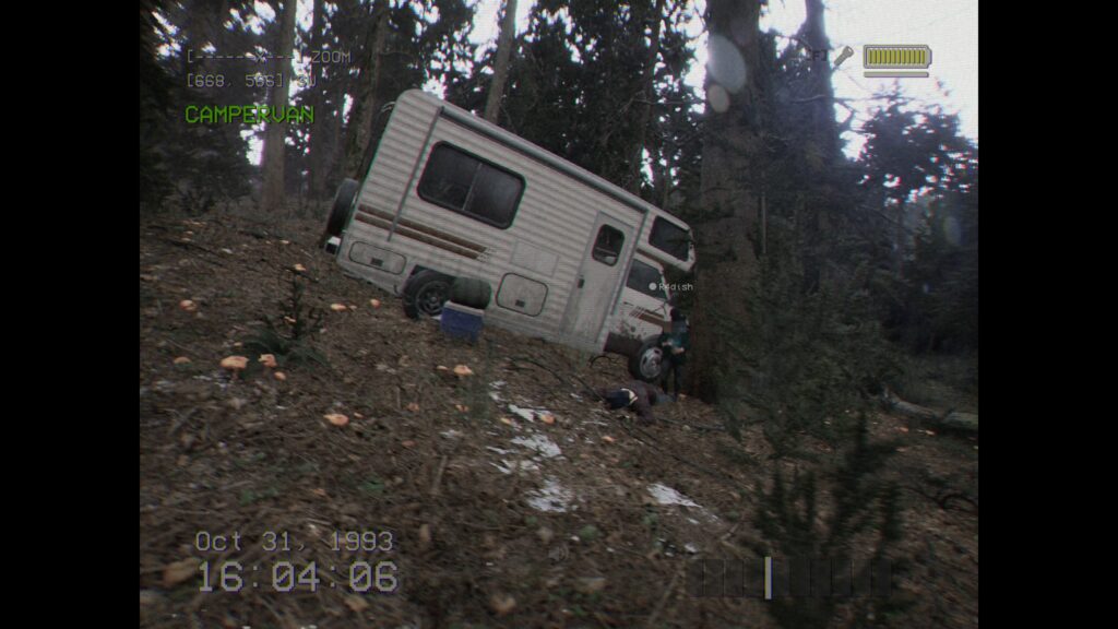 Most of Don’t Scream Together is portrayed in that classic Blair Witch, video camera ‘found footage’ style. This makes it feel somewhat akin to Bodycam but with less action and much more horror. The idea is that you leave your microphone on as you adventure into the depths of the woods, slowly discovering lots of different areas filled with jump scares and creatures that attempt to get you to make noise loud enough to kill you.