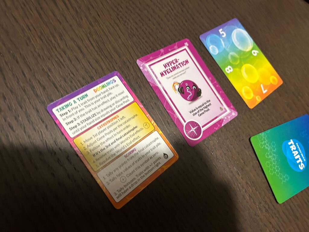 There’s a couple of highlight cards in the pack: Hyper-Myelination has a value equal to the highest Gene Pool in play, which is a great late-game play; Lyonization deactivates the trait that its attached to, while Electromagnetic refires the action of a trait. My personal favourite is Nano, which is equal to the value of the trait its attached to — a brutal combo with Hyper-Myelination… but also, a very good reason why Techling‘s attach traits can’t be bolted onto Dominant traits.