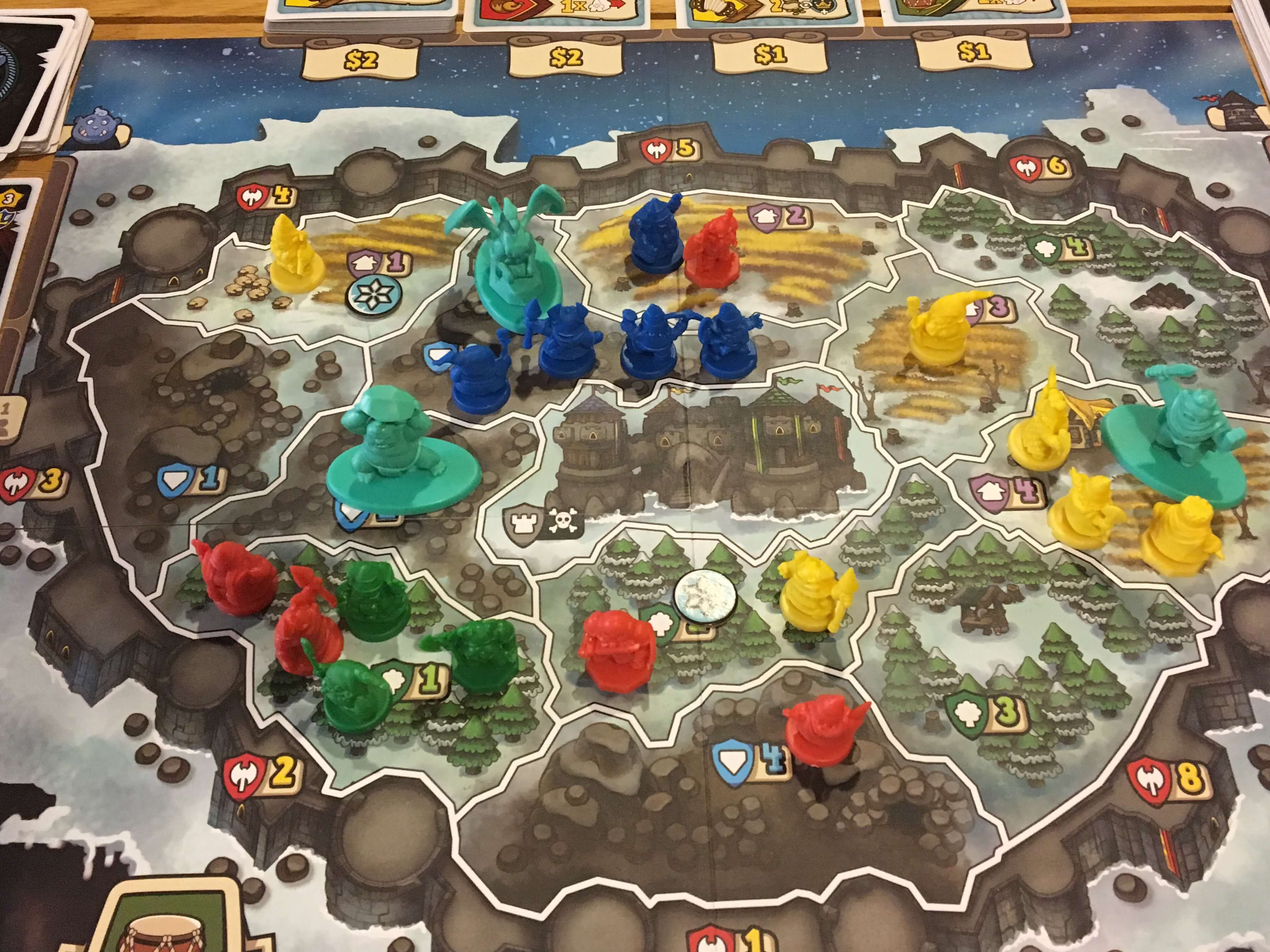 Whilst tower defense games are becoming more and more popular in board gaming, few seem to capture the feel of the video games which inspire them. Dwar7s Winter is a notable exception to the rule, I’d say. There’s an immediacy to it that enables players to cascade events within the same turn to great advantage for instant gratification, but there’s also a need for teamwork and a bit of forward thinking if you intend to make it to the end. From turn four, the game can descend into a free-for-all since it’s possible to be in a position where no monsters can reach the keep and that’s something that sets a very different tone from one game to the next.