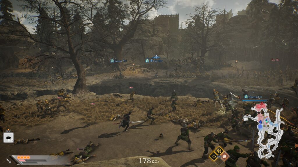 You’ll do battle and gain experience with weapons which then, in turn, allows you to level up your character and select new abilities. Most of these abilities are passives, boosting various stats but ultimately making you stronger in some fashion, however more than a handful of them are Battle Arts, a selection of special moves that you use up bravery (gained through landing strong hits) to do. These Battle Arts can break enemy officer guards (more on that in a moment), cancel their moves or simply throw you — and subsequently your enemies — around the battlefield in classic Dynasty Warriors fashion.