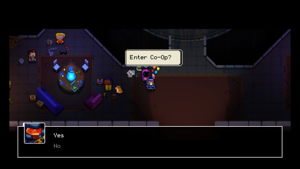 In addition to a fairly satisfying solo mode, Enter the Gungeon features an excellent local co-op mode which introduces a fifth character (I should also mention that there are some secret, unlockable characters, but I won’t spoil the surprise) with a unique healing ability. Co-op is even more tactical than solo play and rather than feeling chaotic (as many co-op twin stick shooters do) it feels more calculated, more focused. In general, it feels better. That said, this is mostly true of the big screen experience, rather than handheld mode, which is quite a challenge to use in co-op due to the small size and level of detail.