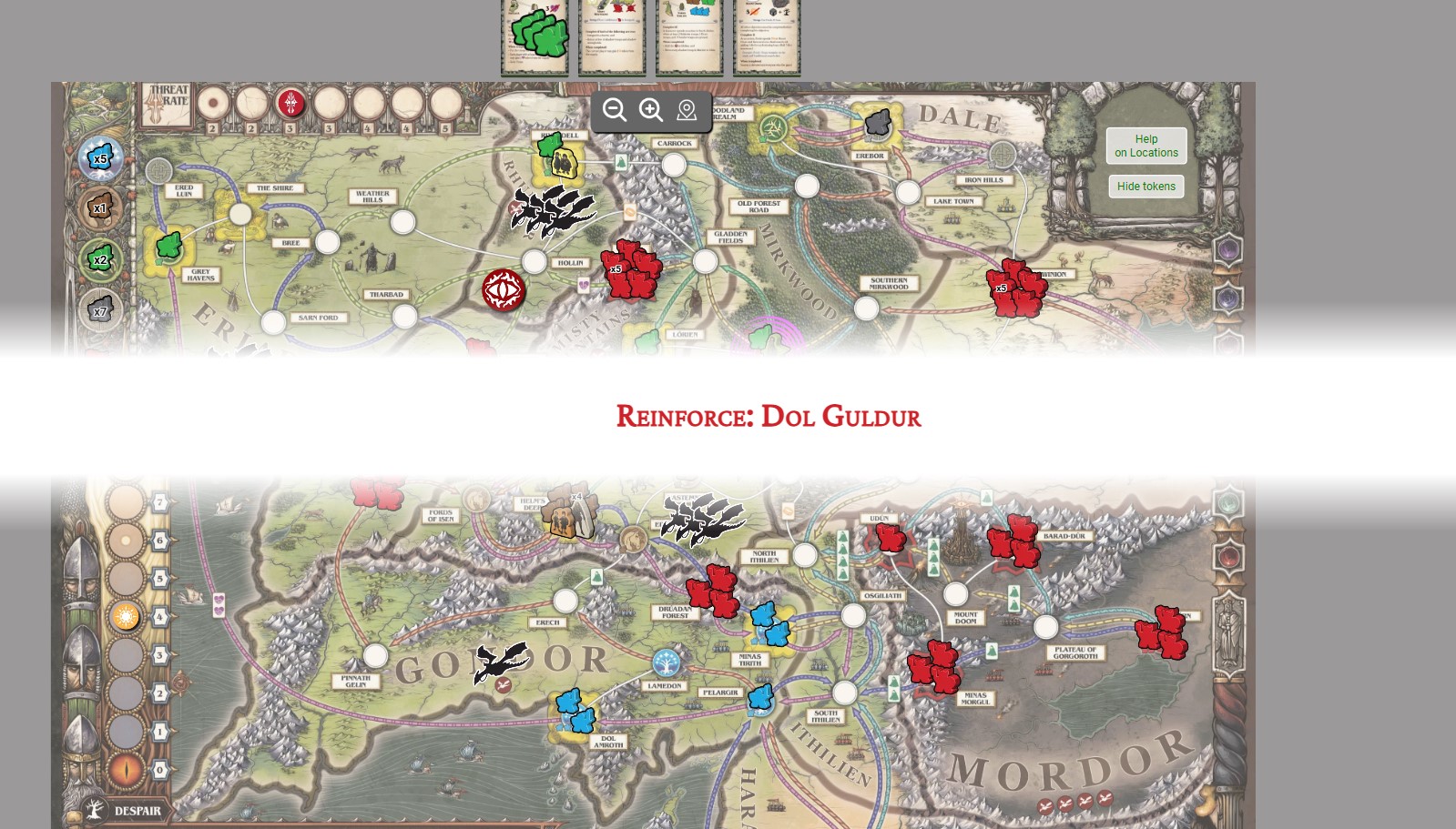 When it comes to losing hope, the ever-watchful Eye of Sauron is always close by. It’s always watching, always advancing and always threatening to end Frodo’s journey. Mechanically simple, the Eye simply moves to Frodo’s location when either certain cards are drawn or when Frodo moves without using a concealment card or token. If the eye is already there and the same kind of card that would move the eye is drawn – hope will fall immediately.