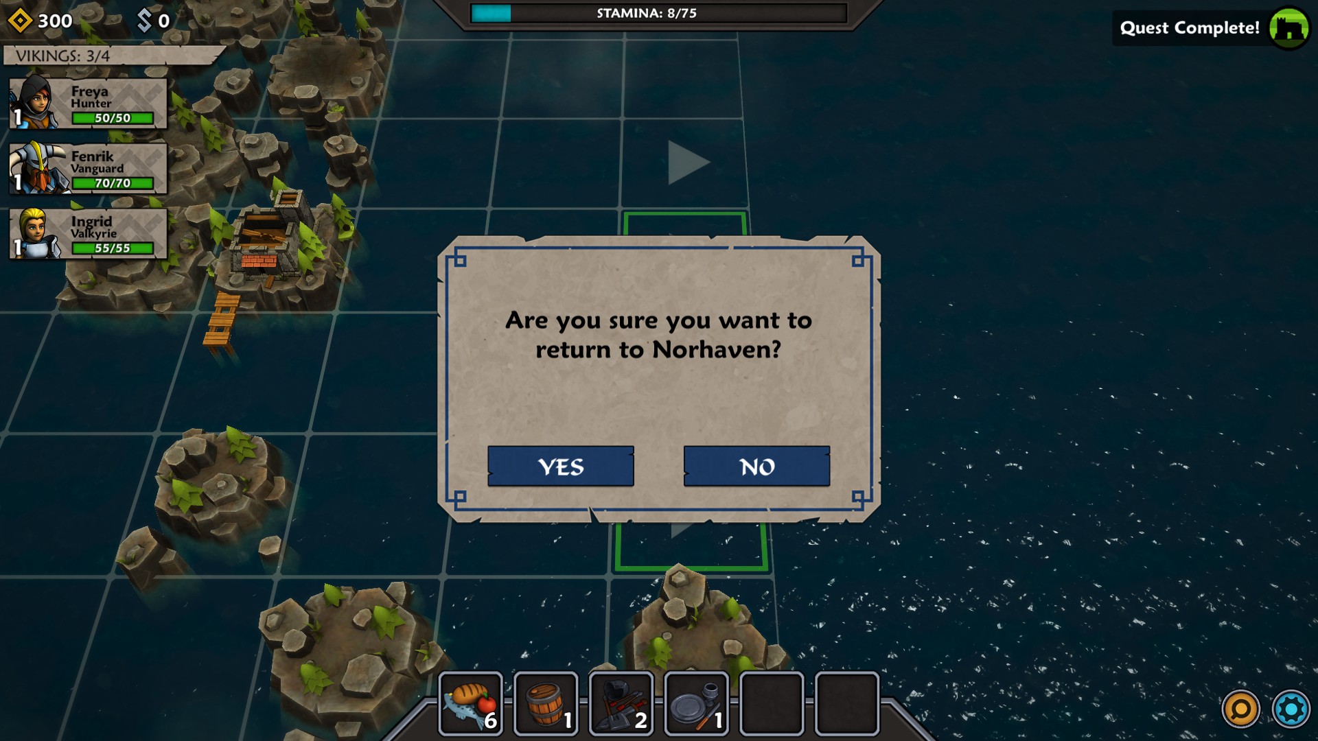 At first, Norhaven is simply a marketplace to buy items and sell goods that you have plundered along the way. When you complete a quest, you are rewarded with Hacksilver and Glory, both of which can be spent on various things. Shortly after completing a couple of quests, the Great Hall will open for you to acquire more crewmen (which may not be the only means to do so). A few more victories along the way, then the Docks will open for you to start adding to and/or upgrading your ship.
