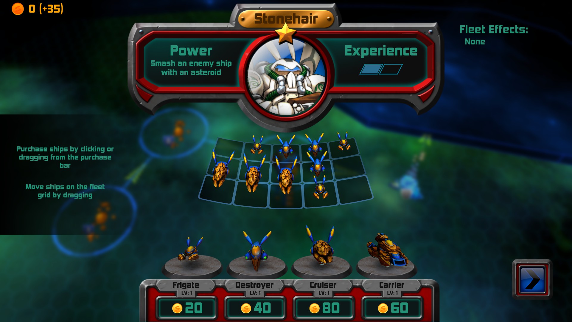 Each side and their ships have certain abilities that are based upon power being constantly generated throughout the fight. These conflicts happen in pausable real-time. Smaller ships’ abilities use less power; larger ones, more power. As the battle is unfolding then, do you use up the power early and often for single-shot abilities or do you wait for the power level to build up more, while you are taking damage(s), to try to inflict more carnage as the scrap progresses? Will the ships even survive long enough to use their powers? Also, other than the command ship, the fleet ships can (usually) only use their special shot once. Each contest is, more often than not, intense