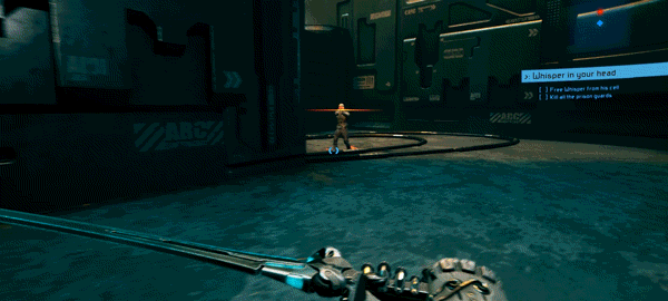 Your weapon, a cyber-blade, will allow you to make quick work of any of the genetically-altered goons that roam the tower. Using a one-hit-to-kill approach, it’s literally a “do or die” situation. You either make the strike first or they take you out, starting you back at the past checkpoint — something which is never too far away. You can use in-air dashes which also slows down time and lets you dash around oncoming gunfire — offering a bullet-time solution to avoid being shot. After landing on the ground, you’re able to dash into your enemies and catch them with your sword, producing a satisfyingly grotesque result of blood and dismemberment.