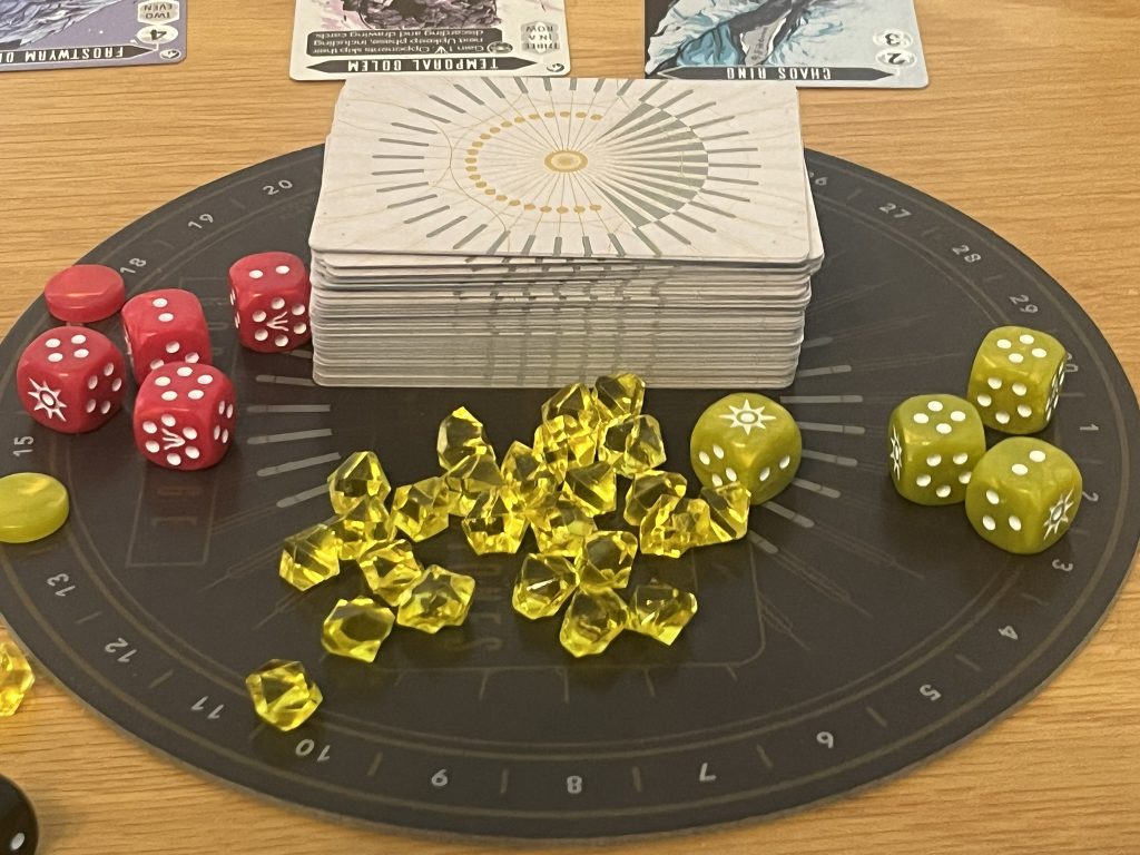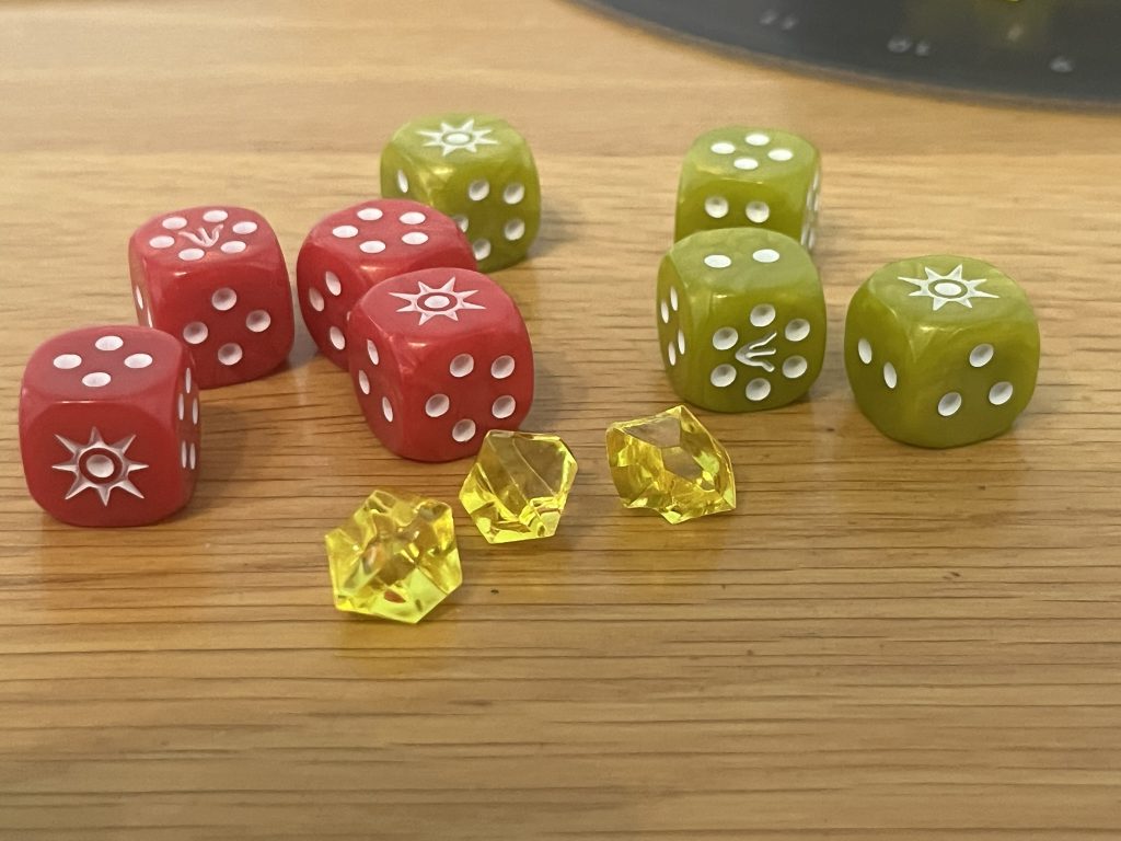 Twilight of the Great Houses brings one of my favourite new twists to the game with its asymmetric player powers. At game start players are randomly assigned a great house card which will give them unique powers to leverage during play. These include perks such as gaining life every time you cast a spell, turning a die to a chosen face once per round or a bigger hand limit. We found these cards add a lot of excitement and unpredictability to the game. However some combinations did feel a little unbalanced and led to some very one sided matches.