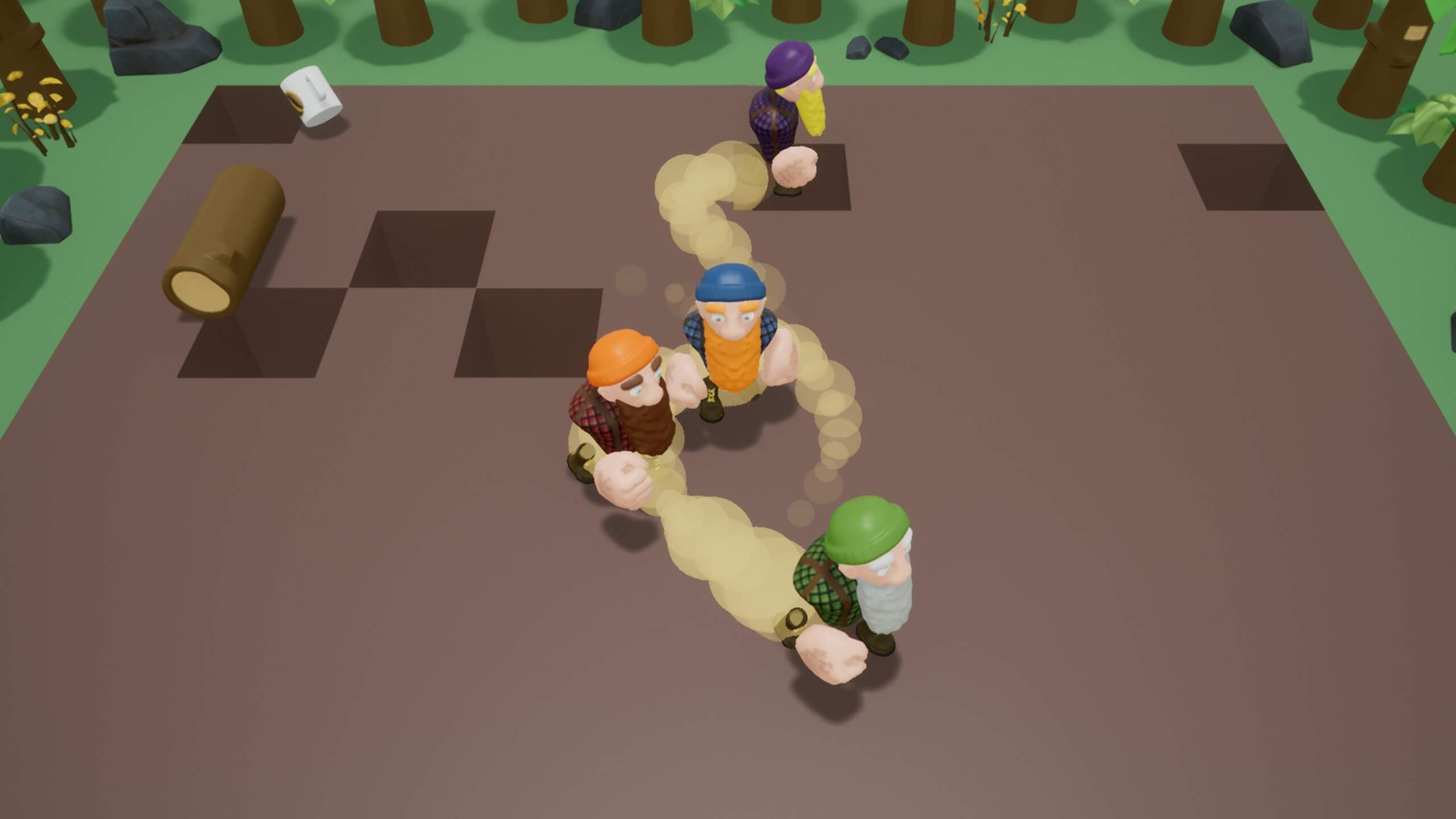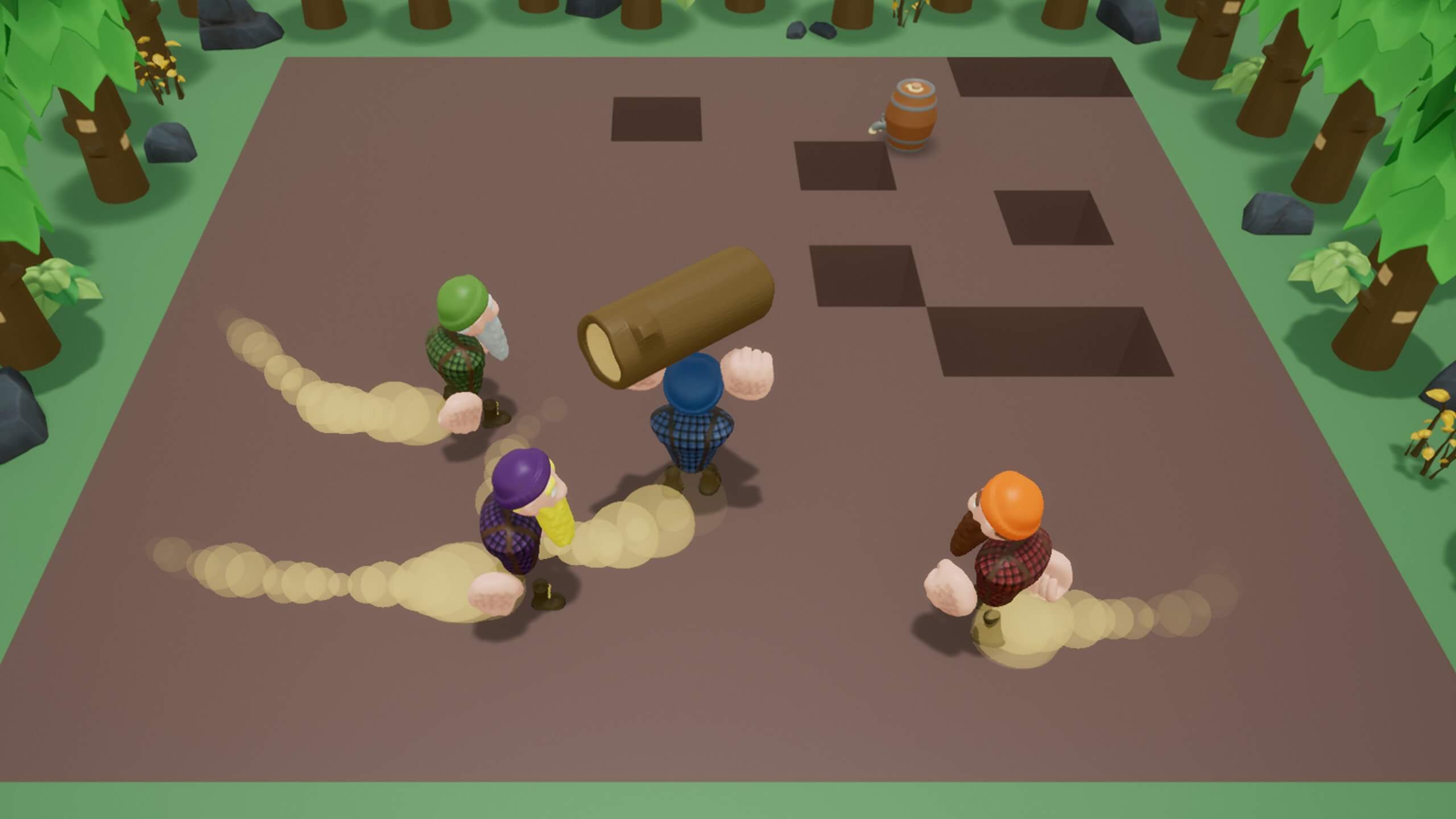 In Got Wood?, a game developed by a group of three students, you can play with your friends in a PVP arena. Each of you (up to four players) take on your inner lumberjack, shoving each other while in a clearing in the woods. Slowly the floor tiles begin to fall, leaving gaps you can easily fall through.