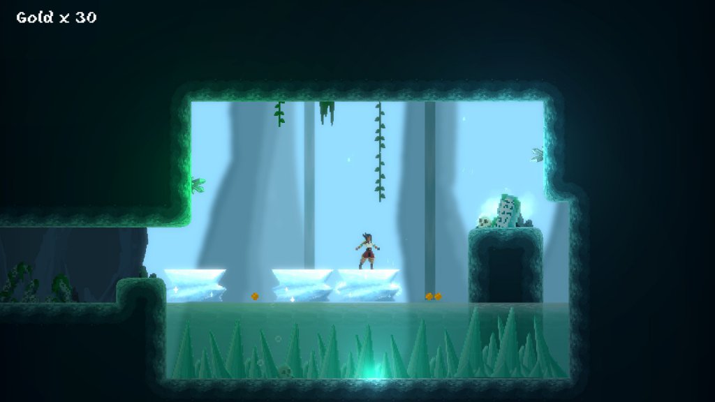 Grotto is a short but well-crafted 2D platform game. It sees you dropped off on a beach outside the mouth of a cave which, as you venture inside, introduces you to a variety of obstacles such as spike pits, stone doors and unscalable chasms.