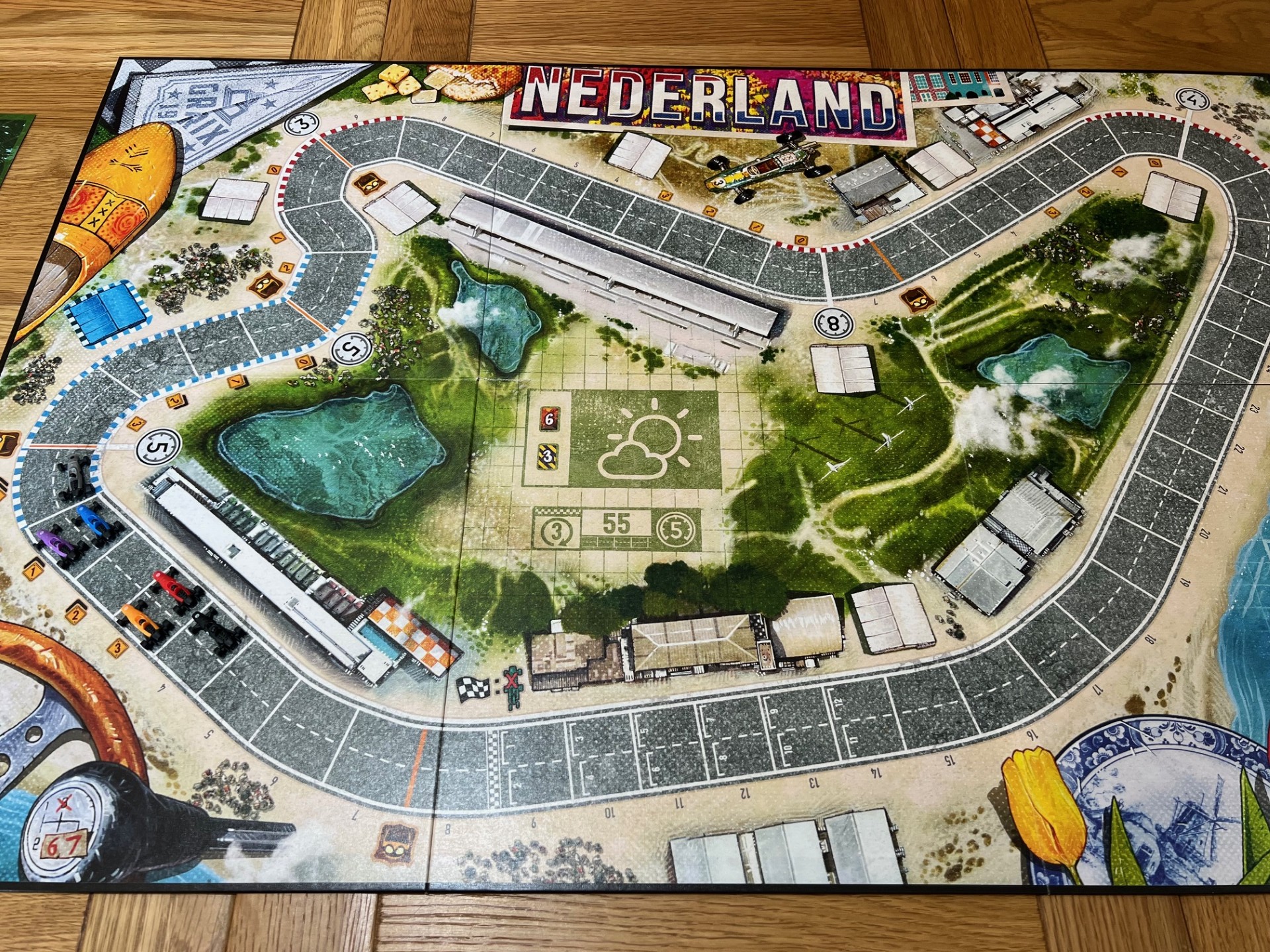 And that’s it, to be honest — there’s not much more to say. As an experience, I enjoy the Espana track not only for its tunnels but also for the large number of corners in its coiled-snake design. The Netherlands is much more open track with longer straights and sweeping bends, and whilst that’s fine and adds variety, I feel like we’ve seen similar on other tracks already released. What makes Spain so challenging is the fact you have so many tight corners and that the new tunnels mean you can’t discard cards you don’t want as often — and this leads to some tense, challenging decisions.