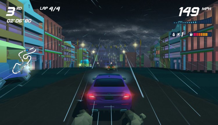 So it looks and sounds great, and there’s a ton of content! The important thing is how it plays, though, and Horizon Chase Turbo plays very well for the most part. Races are between you and nineteen other drivers, with you progressing if you place in the top five. They are incredibly fast and the sense of speed is ludicrous at times. The early races have a lot of straights with space to overtake, but later courses have tons of tight twists and turns that make passing tricky. Due to the sheer speed of the game, you’ll need to learn the tracks or have very good reactions.