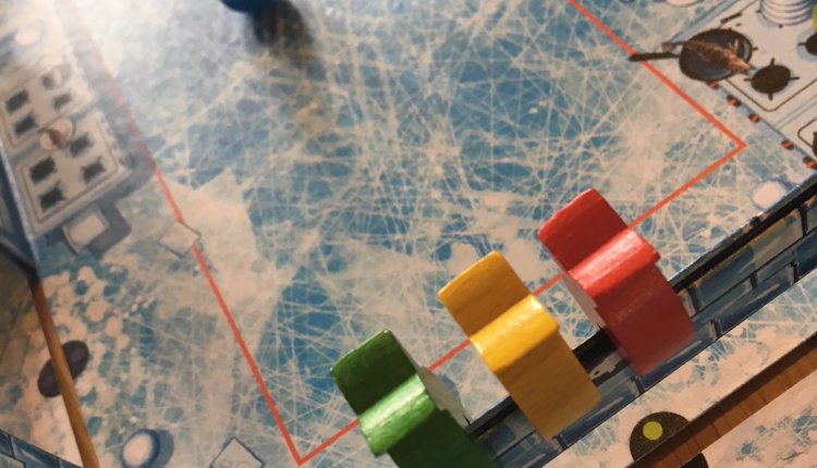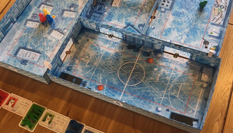 Ice Cool (as the name suggests) is one of the coolest-looking games I’ve seen in ages, but the board itself is much more than just a fancy prop — it’s also a very smart and efficient design choice. The bottom tray of the box is actually the largest of the classroom dioramas that you can see in the pictures, whilst the other rooms are each nested within it when stored. White wooden fish pieces (a bit like clothes pegs) are used to attach these boxes at the corners, resulting in a fairly robust and very attractive game.