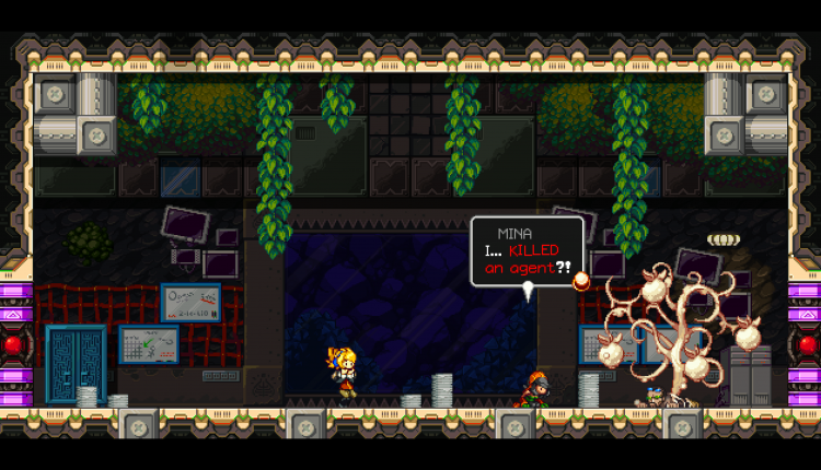 Following the well-established Metroidvania system of gated progression through tool, weapon or item acquisition, Iconoclasts presents a surprisingly complex map with a high number of secret or unattainable items early on. Robin also meets other persecuted individuals in her travels, some of which will join her on her quest for certain sections offering additional skills or in some instances the potential to swap characters and control them for a limited time.
