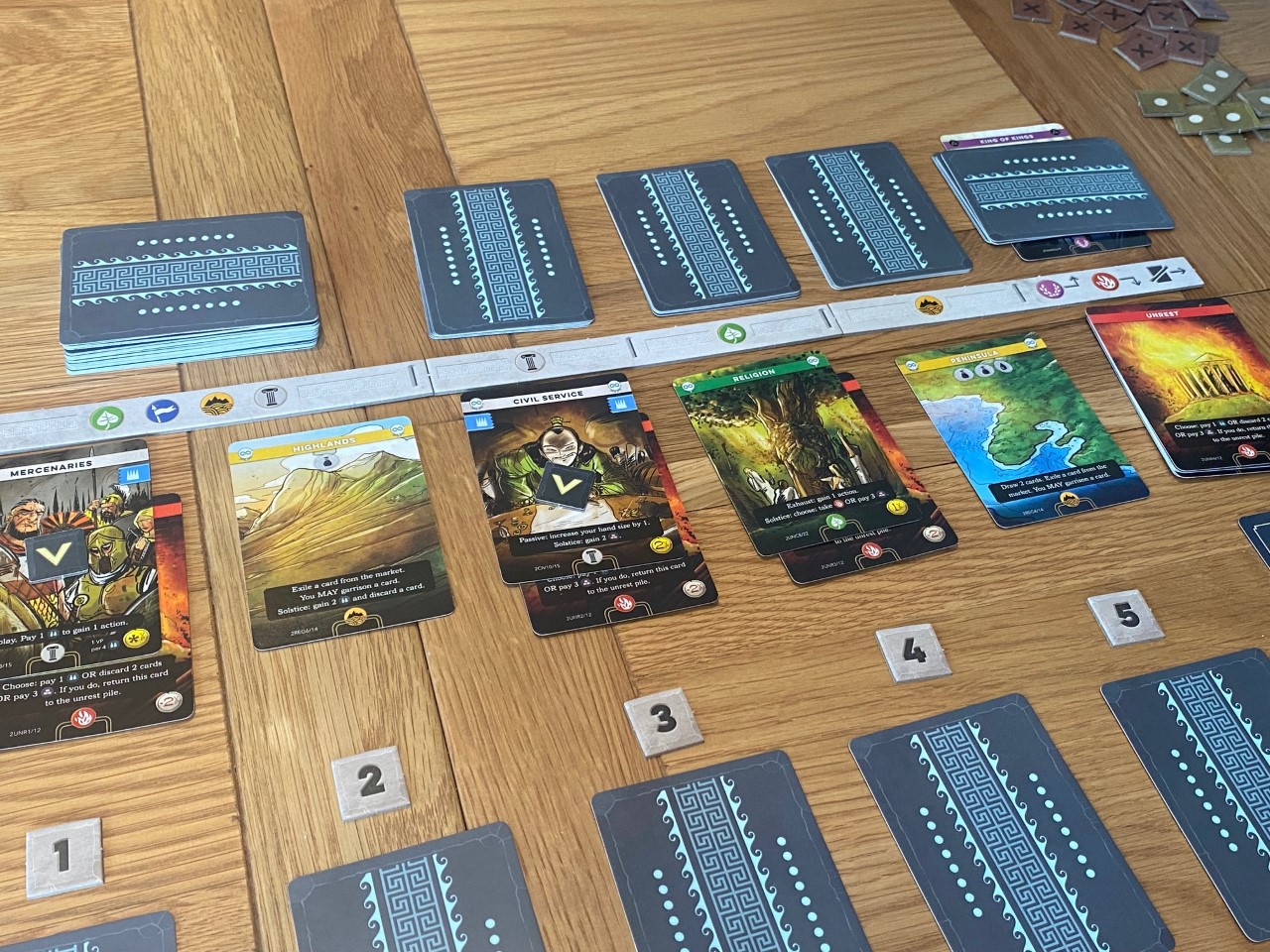 Weighing in at about an hour to ninety minutes solo, or perhaps two hours at two players, Imperium is perhaps the most complete “history simulator” of a comparable weight that I can name. It is nowhere near as down in the detail as Through the Ages, but what it lacks in that regard, it makes up for tenfold by making each civilisation feel completely unique, and by being several hours shorter.