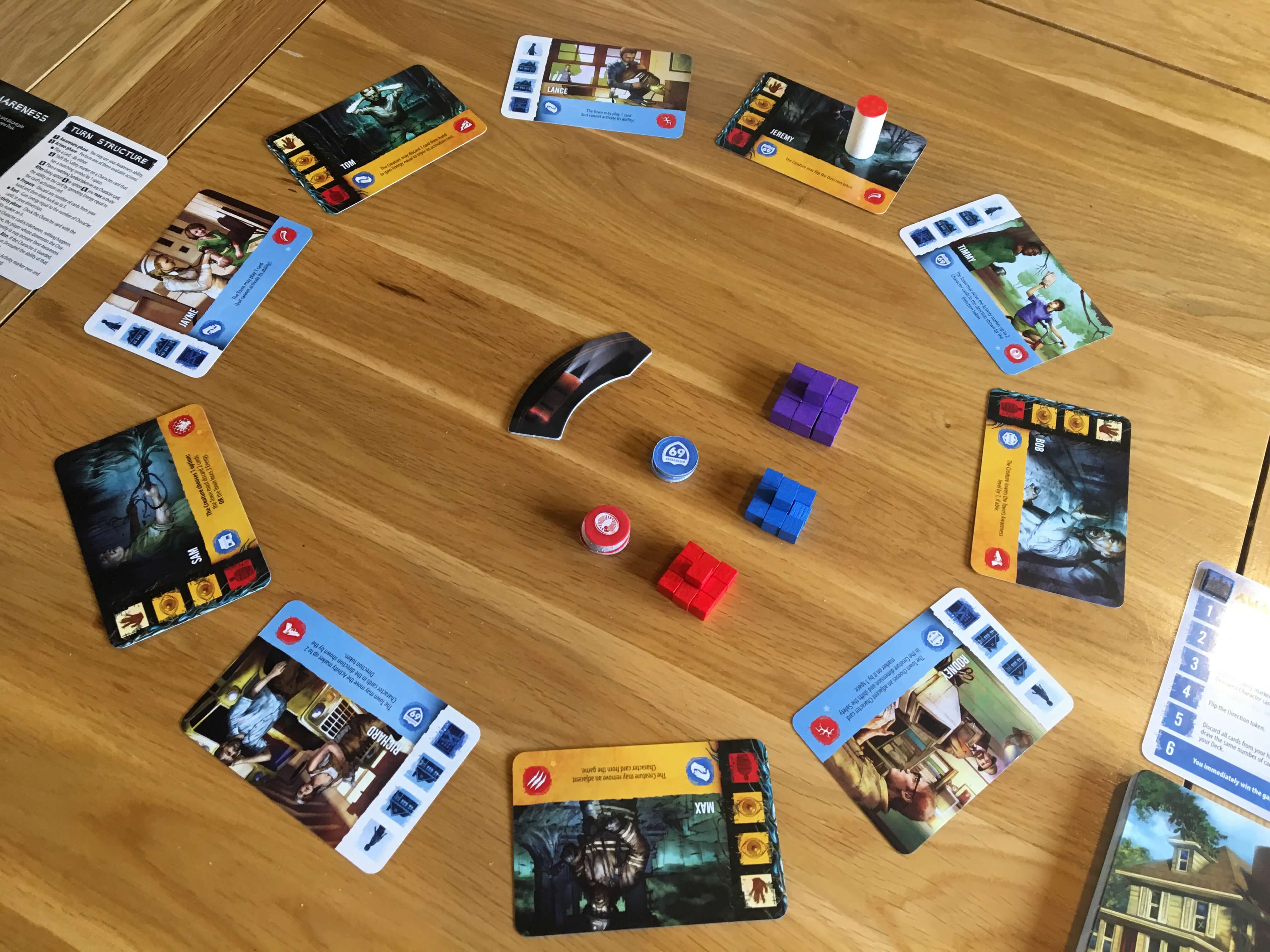As is often the case, there are two key areas to consider when thinking about how Inbetween feels to play. Firstly, as a fan of both Stranger Things and any fiction that explores links between the human realm and what might lie beyond it, I can’t fault Inbetween thematically. Despite its small box and lack of any elaborate components (boards, miniatures etc) it creates a wholly encompassing ethos that is very immersive when the ring of cards is laid out and the decks are in hand.
