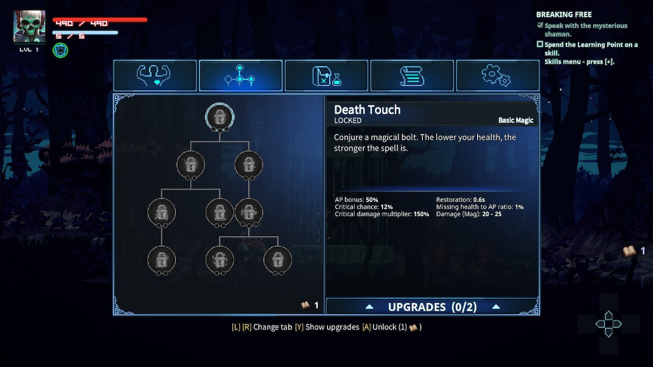 Each character has the same matching gorgeous artwork and complimenting animation to go along with it. For my play, I decided to play as Shax, who has a skull-like mask. Or maybe it’s his face? I don’t know, all I know is he grabbed my attention out of the lineup so that’s who I picked. Once you select your character, which is essentially your save file as well, you start the game. This is where things took a turn, at least for me.