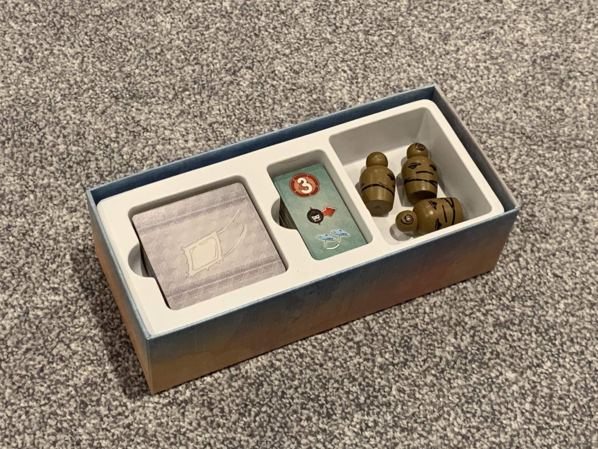 Aside from the introduction of these cards, the key addition in this expansion is the three yokai pawns, represented by wooden pieces that fit in nicely with the components from the base game. These pawns come into play when the yokai symbol on certain cards is shown, and a player takes the card accordingly.