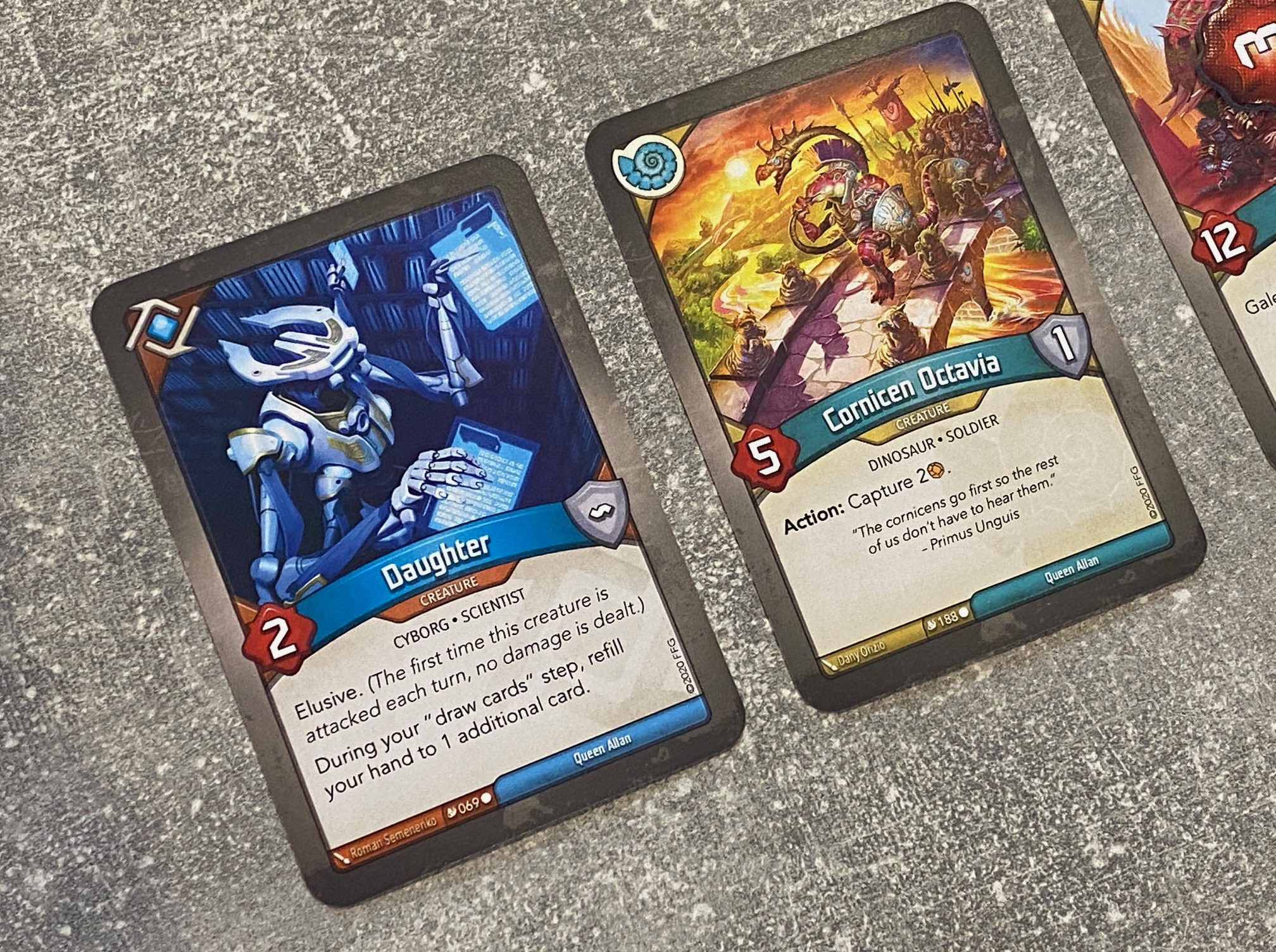 With cards played and actions taken, you will then “ready” your creatures by returning them to an upright position, and then draw cards back up to your hand limit (which is usually six). After this, play passes from you, to the other player, and they begin the process of checking for forged keys and declaring a house.