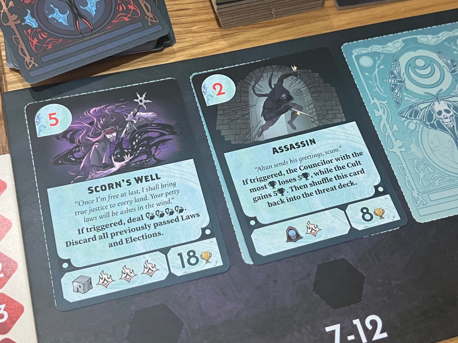 There are a few rough edges. As mentioned, the voting system could use more bite. Some players might find the initial learning curve steep — there’s a lot going on, and the rulebook, while thorough, requires a careful read. The asymmetry, while brilliant, can also lead to analysis paralysis, especially for new players trying to parse the implications of each guild power – I liked how seeker powers are the same as upgraded pawns in the main, helping players ramp into the idea of upgrading steadily. Whilst the cultist system adds tension, it can occasionally feel like a distraction from the core competition and sometimes, it swings wildly from too easy to bloody hard.
