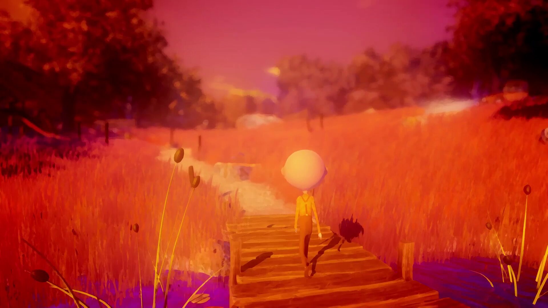 When quizzed on The Last Day of June’s vivid colours, Massimo confirmed that the rich, alien purples and mauves of the game’s opening sequences were meant to symbolise the calming state of the world prior to the events that trigger Carl’s quest—with deep-blues and bright colours employed to offer up feelings of loneliness and safety respectively. This is most obvious with the starting sequence of the title, as Carl walks through the shivering long grass which fills the space between the pier and the couple’s car – the car, despite its bright, full-beam lights glaring over the field unnecessarily (as while the sun is setting as the game starts, it most definitely wasn’t as they left) is completely shrouded in darkness – with the interior so dark that it’s hard to see anything within. Contrast that to the orange-red grass, the lapping blue waves, and the glow of the setting sun which always seems to beam out from June.