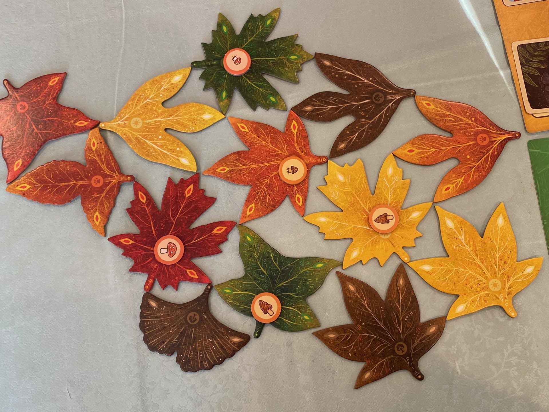 In Leaf, a forest-themed and environmentally friendly game from Tim Eisner and Weird City Games, the players will use cards to place leaves and build an expansive tapestry that represents a forest floor during fall (or Autumn, as we call in the UK). Each connection between leaves will yield a benefit — whether growing mushrooms, moving a friendly squirrel, or drawing animal or leaf cards.