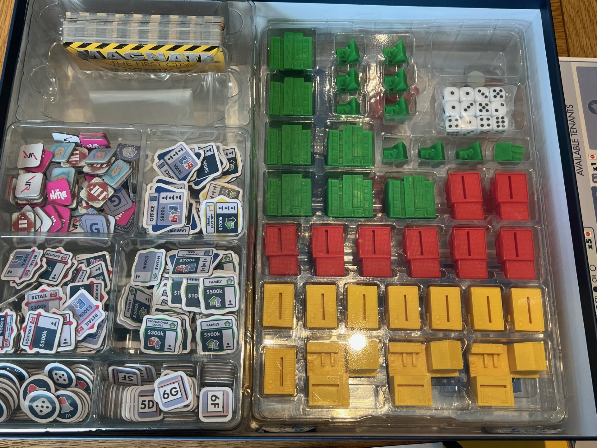That said, Magnate: The First City isn’t without a few minor quirks. The randomness of tenant placement can occasionally feel swingy, and the adjacency bonuses, while thematic, can create runaway advantages if not balanced carefully. The game also leans heavily into its economic theme, which may not appeal to players looking for narrative or character-driven experiences. It’s clear that Magnate was designed with Monopoly in its sights and I feel confident that James Naylor’s intent was to replace the outdated classic with some smarter, more modern and frankly-better, but Magnate can still be seen as too complex by some.