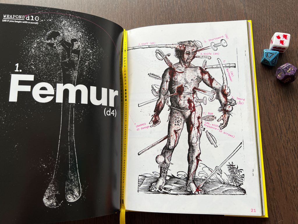 When it comes to how the systems all work together, Mörk Borg is pretty great too. Attack, Defend and general checks are all pretty simple to manage, although you’ll find that you’re rolling To-Hit, Attack, Deflect, quite a bit as there’s going to be a lot of negated damage. That said, things like Area of Control and Attack of Opportunity are out, and the decision to include some light improvised weapons & biting rules means that combat shouldn’t ever be too boring.