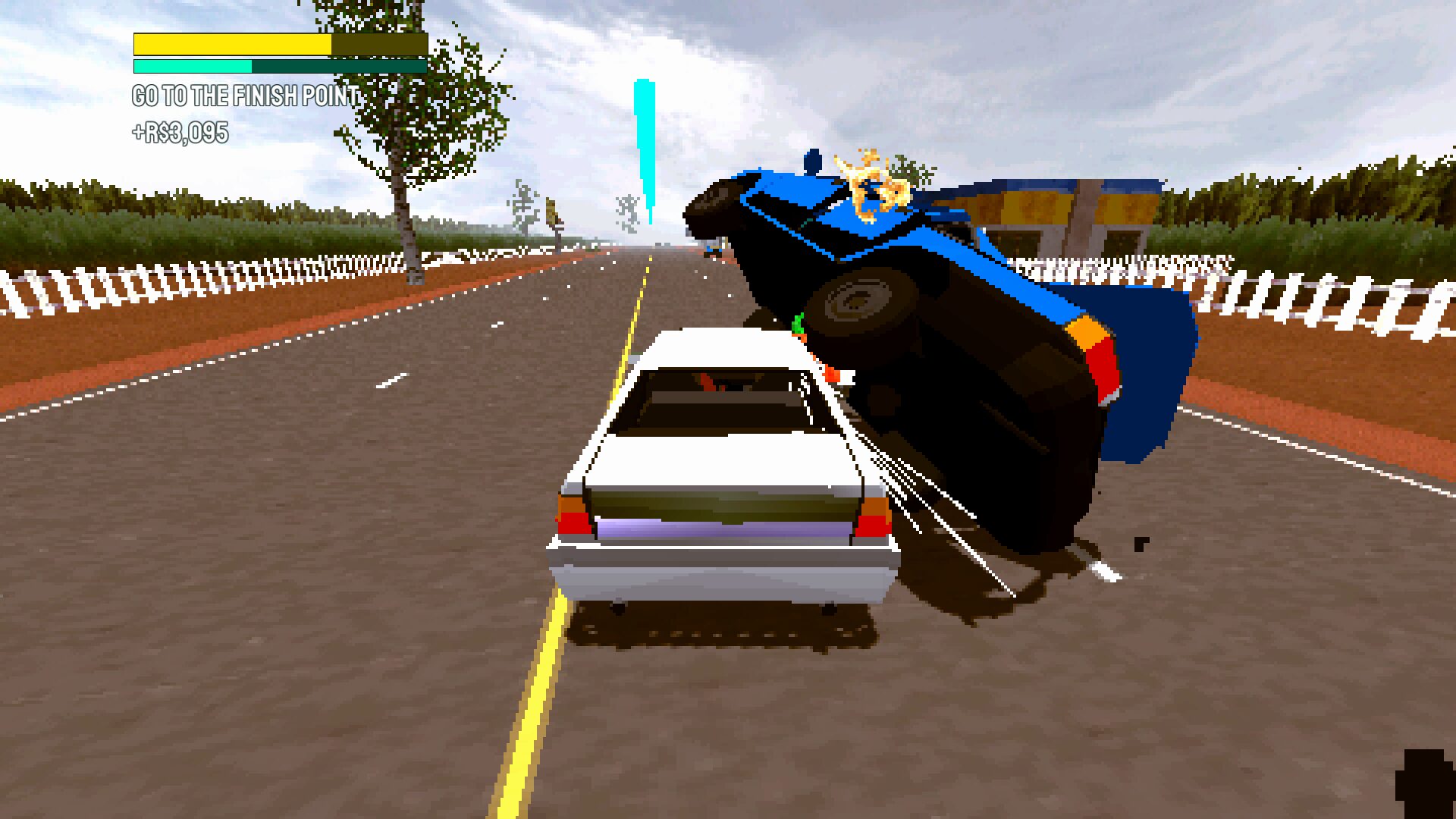 Well, yes, in theory. The difficulty ramps up pretty quick, forcing you to spend your cash on upgrades and new cars and weapons if you want to stay competitive. The music you’re playing around also isn’t bad — a mix of Brazilian Hip Hop and R’n’B. It’s not the kind of music I expected for the theme of the game, but it suits it quite well. I was vibing as I played. And I suppose that’s all you can ask for a good soundtrack.